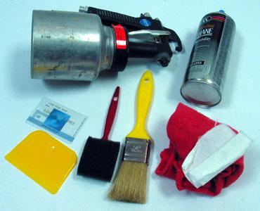 Clean the surface with petroleum distillate, a rag, a brush, and/or a compress or vacuum.