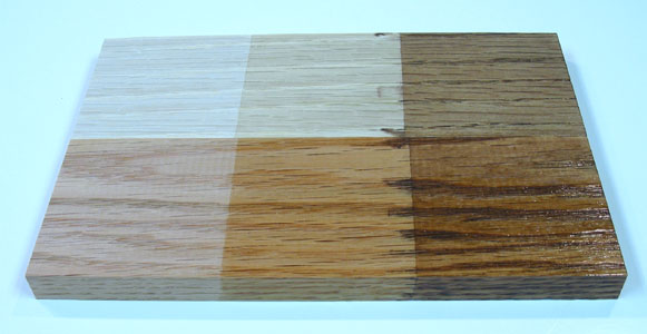 Always test stains on scrap pieces from the same material; if the stain blotches or makes too much contrast, add a washcoat before staining, or instead use a gel stain now or between protective layers.