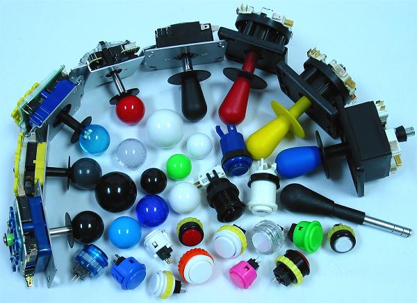 Joystick handles come in many varieties of colors. Many can be replaced using alternate tops and sticks. Seimitsu offers some clear and bubble-filled tops that are very attractive. Sanwa offers tops with a mesh pattern.