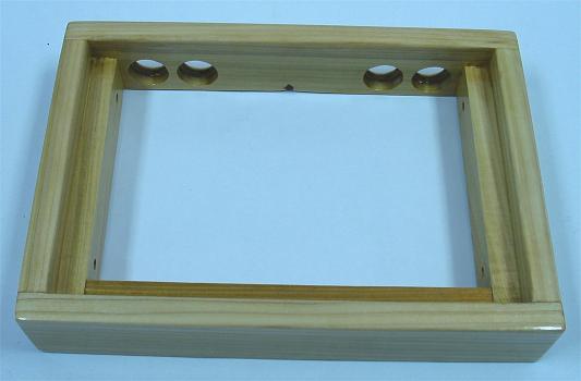 So I could work the two layers of the control panel simultaneously, I placed the screws that hold them together early using 3/4" non-tapered screws while they were set in the box. I placed them 3/4" from the sides. I piloted in the holes slowly small to large so the glass would not crack, finishing one screw at a time so they would set together well. I only used three because I did not want screws getting in the way of where I rest my wrists and palms.