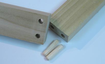 I then glued and clamped the pieces with dowels together and let them dry for a few hours each. I cleaned away glue with a dry cloth early on and this left a little dark tone on some parts; some masking tape would have been nice to prevent this. After they dried, I could have easily sawed some dowels and put some plugs in the entry holes (this could be done with screws too), but I kind of liked the holes, so I left them.