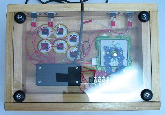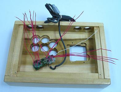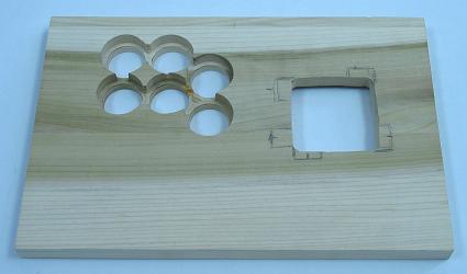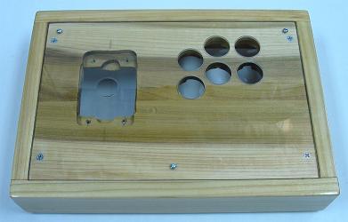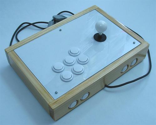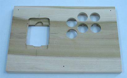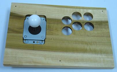 The joystick designed here is a 1-3/4 box, two-layer routed panel, poplar controller.