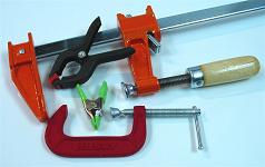 Clamps (also called cramps) can be considered both fasteners and hand tools. They act as extra strong hands that hold things in a certain position and come in a large variety.