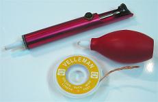 A desoldering tool helps remove solder and comes in a few forms. It might be needed in changing a connected wire or fixing mistakes, and will be necessary in removing analog sticks. Centering the pump form on the tip of the submerged soldering iron is an effective way to use it. But pumps are not as effective as braid. Disposable desoldering braid is cord of thin copper strands that mop up solder. Simple flicking away of solder can work too. You may need flux paste to prevent ruining the metal during desoldering.
