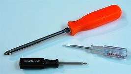 A screwdriver inserts and removes screws and bolts. They come in different sizes and shapes. The two main shapes for making and modifying a controller are slotted (flathead) and phillips (plus-shaped).