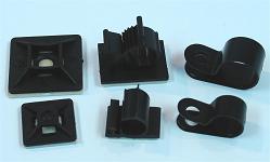 Wire mounts are also fasteners used for organization and attach to a surface, usually holding down ties, clipping onto wires, or looping around wires.